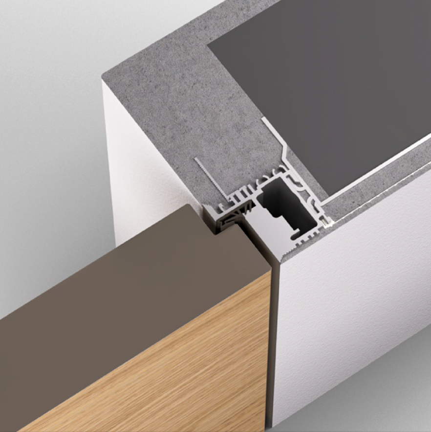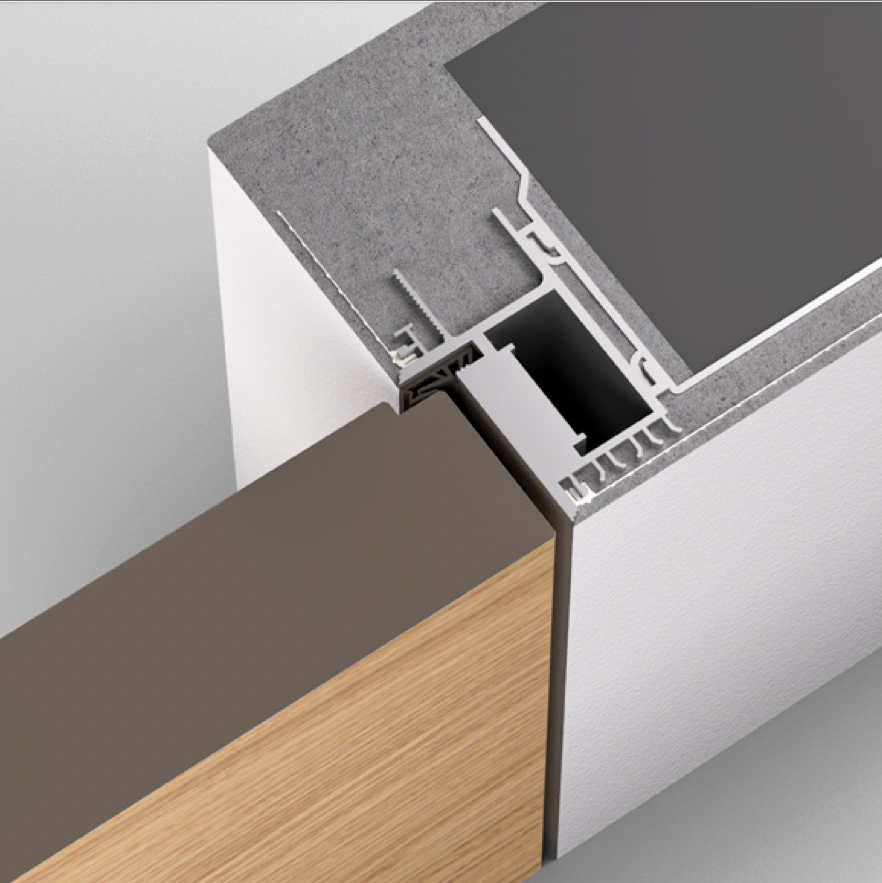 S sistemom vratnih profilov podjetja AGS ustvarimo fiksno povezavo med okvirjem vrat in steno s pomočjo armaturne mrežice, vstavljene v profil.
