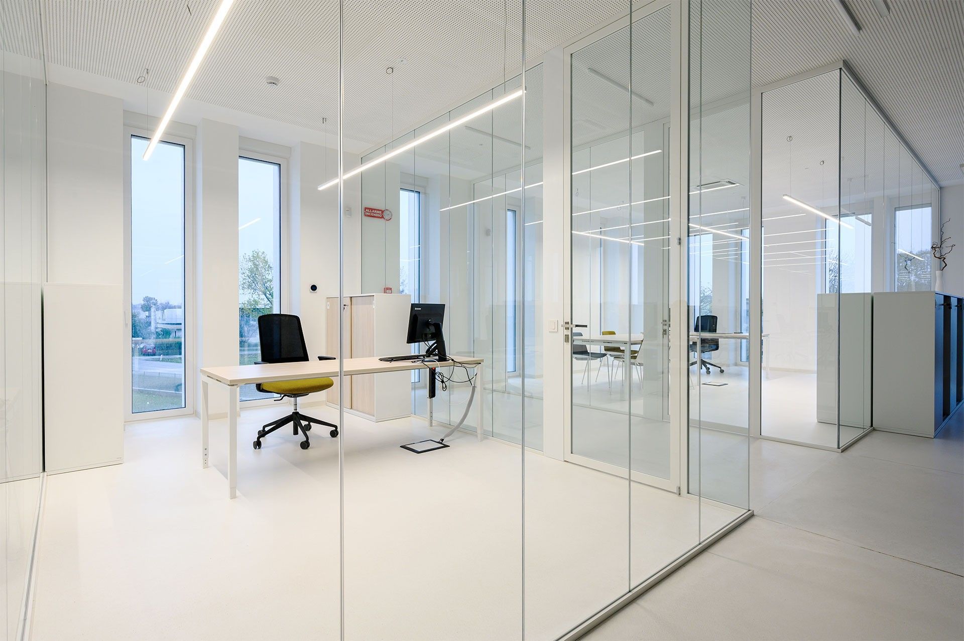 Sistem minimalnih steklenih predelnih sten z vidno površino profila le 25 mm.