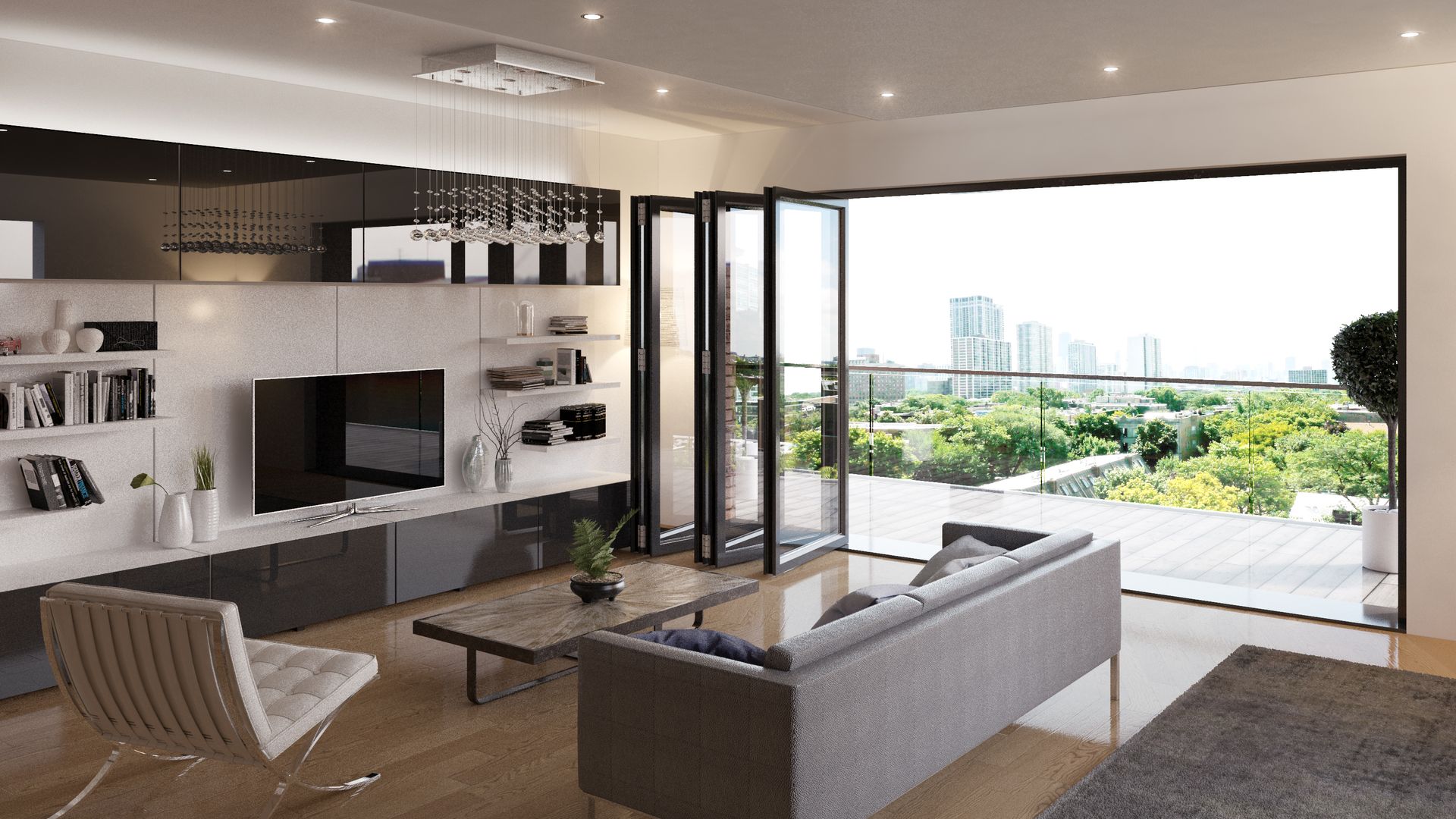 Drsno-zgibni sistem, ki omogoča maksimalno odprtost prehodov v zunanje prostore.
