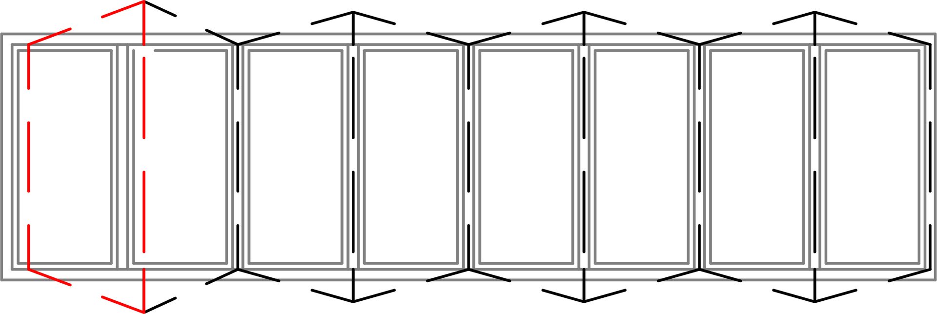 Sistem aluminijastih profilov s prekinjenim toplotnim mostom za izdelavo harmonika oziroma preklopnih sten omogoča uporabo kril velikih dimenzij, ki se odpirajo navznoter ali navzven po celotni širini, kar zagotavlja maksimalen prihranek prostora in prilagodljivost.