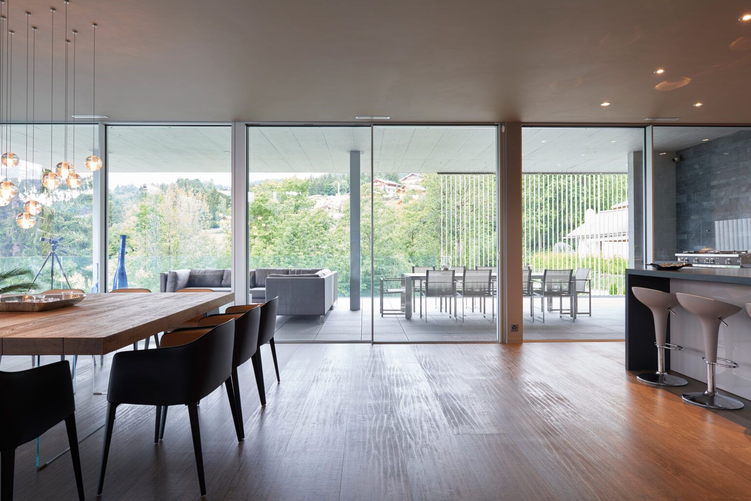 Sistem Keller minimal windows 4+ omogoča izvedbo izredno velikih drsnih elementov z uporabo troslojnega termopan stekla. Minimalni profili omogočajo odprte bivalne prostore z neoviranim pogledom navzven.