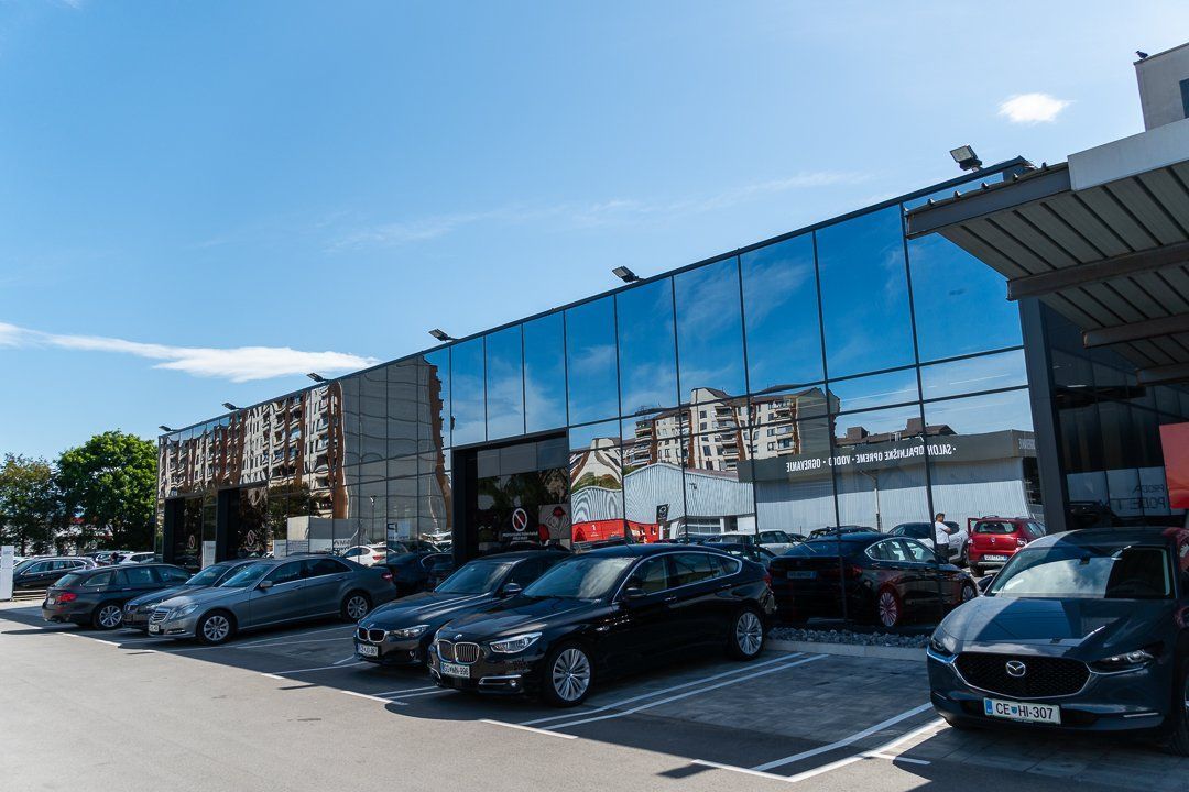 Trgovski center Qlandia v Novem mestu odlikuje sodobna in tekoča arhitekturna zasnova z izrazito ukrivljenimi fasadnimi linijami in velikimi zastekljenimi površinami. Kombinacija bele fasade in temnih aluminijastih okvirjev ustvarja eleganten kontrast ter omogoča obilico naravne svetlobe v notranjih prostorih. Interier je svetel, prostoren in zasnovan za prijetno nakupovalno izkušnjo, z odprtimi prehodi in naravno osvetlitvijo preko trakov zasteklitve v višini stropa. Objekt sledi sodobnim komercialnim standardom in obenem prispeva k urbanemu značaju okolice.