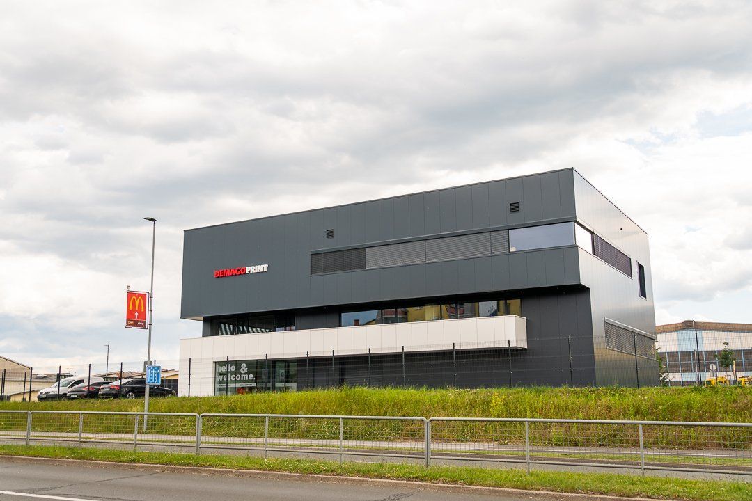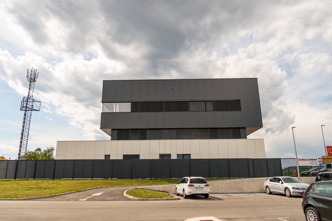 Objekt podjetja Demago v Mariboru ne pusti dvoma — sodoben, učinkovit in samozavesten. Njegova temna fasada s kontrastnimi svetlimi elementi izstopa v prostoru in takoj sporoča: tukaj se dela resno.
