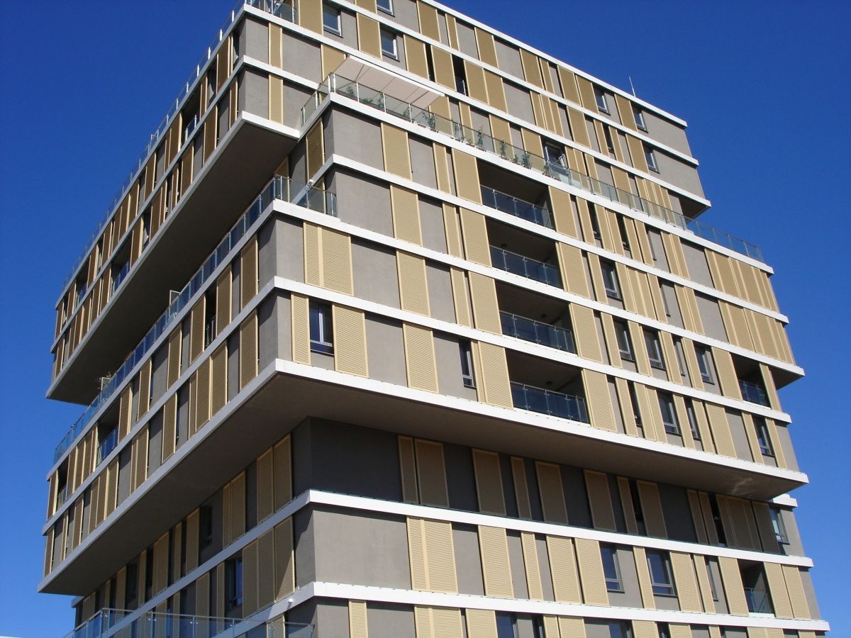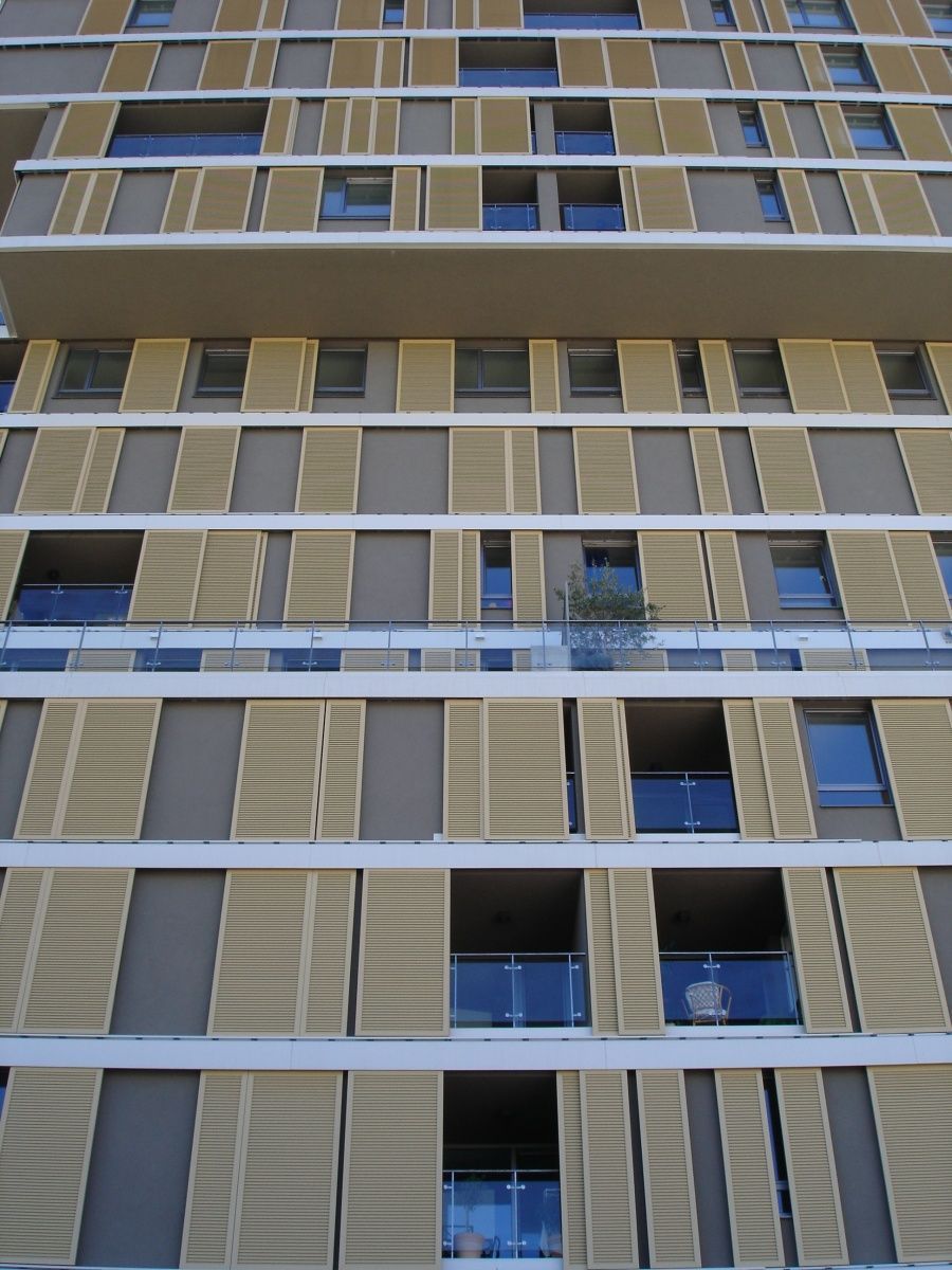 Stanovanjski kompleks Majske poljane izstopa po svoji izraziti arhitekturni podobi z dinamično fasado, ki jo oblikujejo senčila različnih dimenzij in tekstur. Zasnova omogoča veliko naravne svetlobe ter obenem zagotavlja zasebnost in učinkovito zaščito pred soncem. Uporabljeni sistemi omogočajo prilagodljivost, energetsko učinkovitost ter moderen videz, ki se lepo vključuje v urbano okolje Nove Gorice.