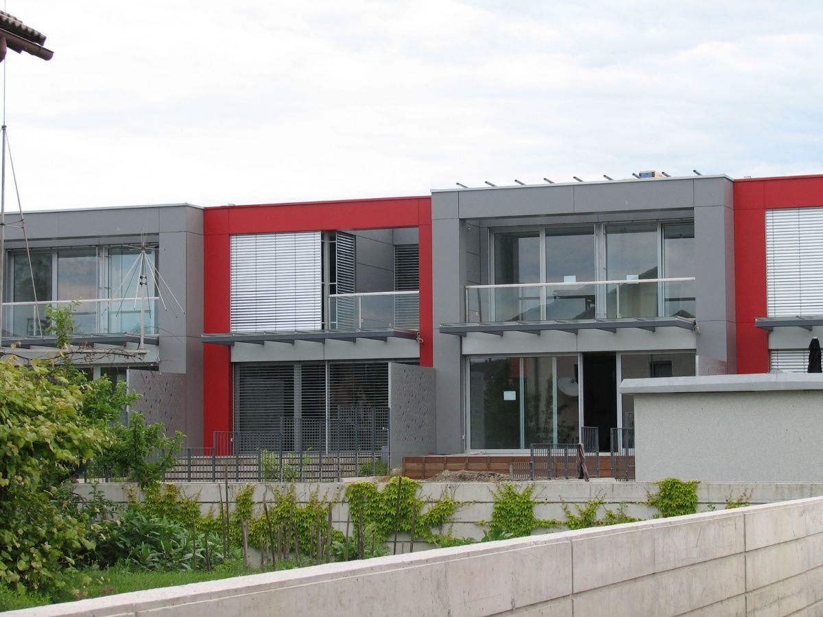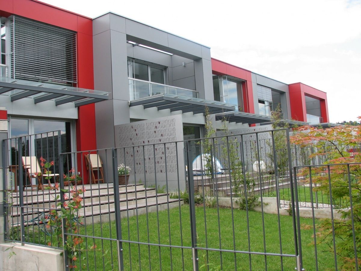 Stanovanjski objekt Mali graben v Ljubljani prepriča z izrazito sodobno arhitekturo, ki jo zaznamujejo ostri volumni, kontrastne barve in čiste linije. Kombinacija sivih fasadnih plošč z živahnimi rdečimi poudarki ustvari dinamičen in moderen videz. Steklene ograje, nadstreški in zunanja senčila dodatno prispevajo k funkcionalnosti in estetiki. Arhitekturna zasnova z odprtimi bivalnimi enotami, ločenimi vrtovi in terasami omogoča visoko kakovost bivanja z veliko naravne svetlobe in zasebnosti.