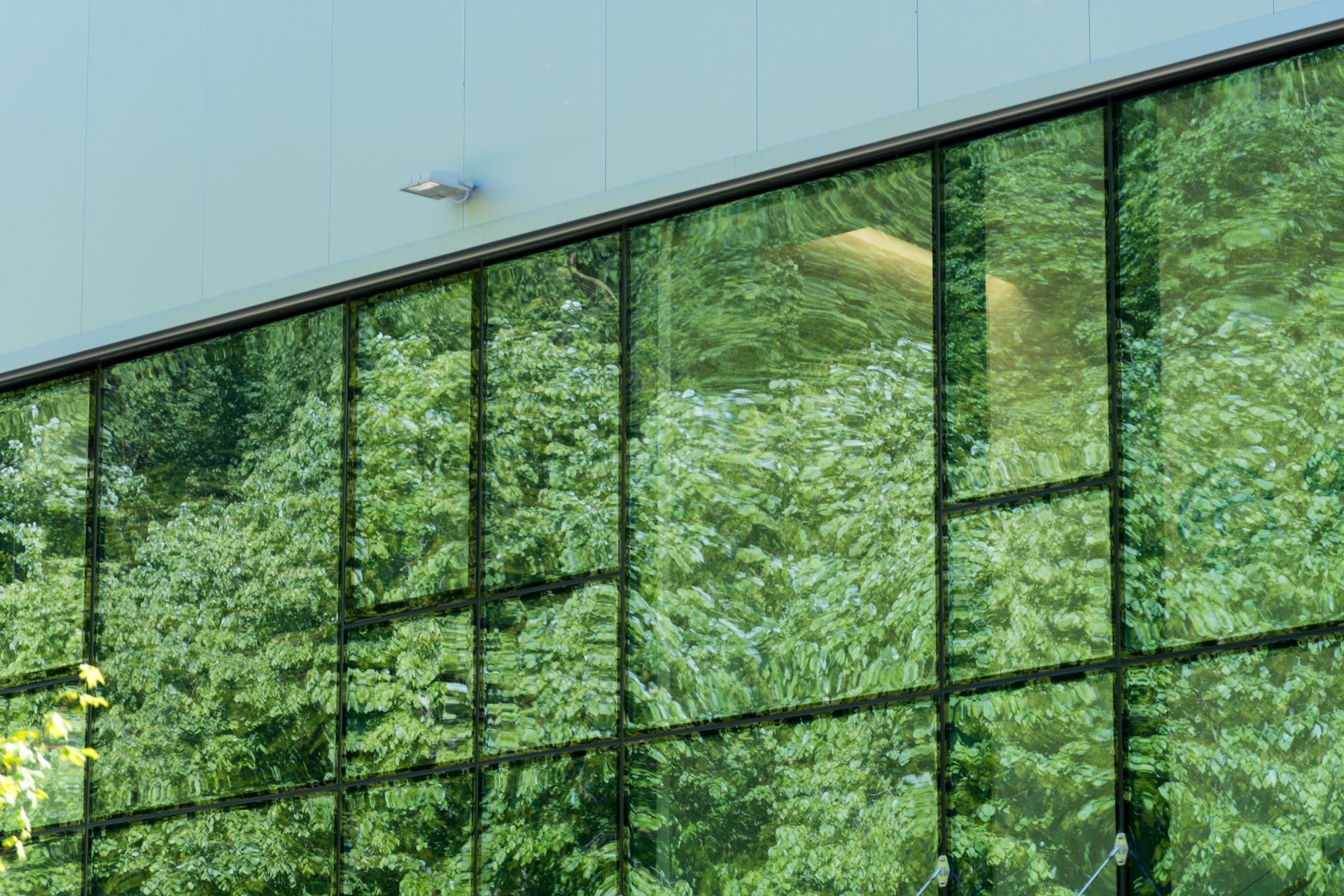 Sistem AluK SG50 omogoča izvedbo fasad brez vidnih aluminijastih profilov na zunanji strani, saj se steklo lepi ali mehansko pritrdi z vijaki. Tako je dosežena privlačna estetska kontinuiteta z minimalno vidno povezavo med steklenimi polji, široko le 21 mm.